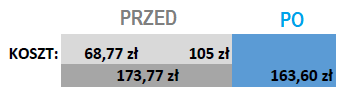 Po zmianach właściciel firmy płaci o 10zł mniej miesięcznie niż dotychczas, ale co ważniejsze zyskał dodatkową i dużo wyższą ochronę niż miał do tej pory.