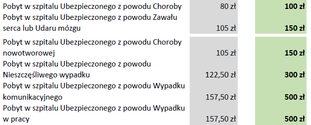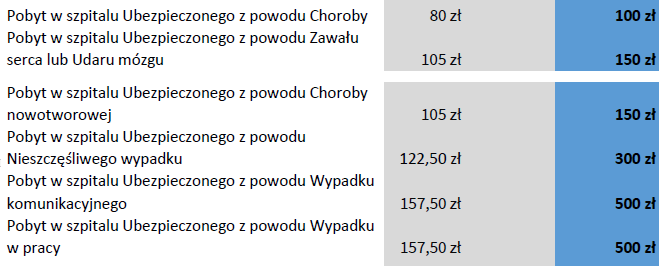 Świadczenie za pobyt w szpitalu pozostawiliśmy takie samo jak w ofercie podstawowej dla pracowników, ponieważ po zmianach jest już wystarczająco wysokie