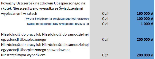 Ochrona za poważny uszczerbek wzrosła aż do 160.000zł, a za niezdolność do pracy aż do 200.000zł